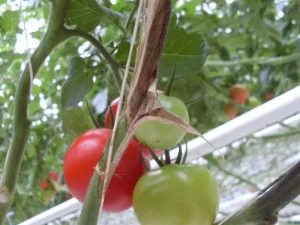 Las heridas también ofrecen suficiente humedad para que proliferen los hongos, por ejemplo las heridas de poda en los tallos de pepino y tomate.