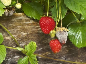 En verduras y en fresa, el moho gris (Botryotinia fuckeliana / Botrytis cinerea) afecta a los frutos. En las plantas en maceta, los esquejes se mueren debido a la infección transmitida por las plantas madres infectadas.