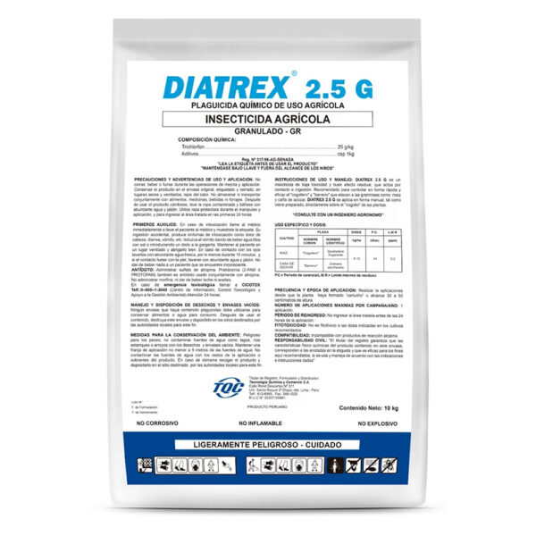 Insecticida de efecto residual prolongado que actúa por contacto, ingestión e inhalación. Controla insectos del suelo y foliares que afectan a cultivos: Alfalfa, Cebolla, Maíz, Arroz, Piña, Vid, Pimiento, Espárrago y Arándano.