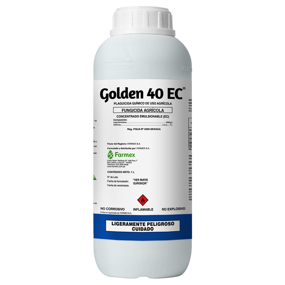 GOLDEN® 40 EC es un fungicida sistémico de amplio espectro con acción protectante y curativa, de larga duración; es absorbido por las raíces y las hojas, con traslocación acropétala y basipétala.