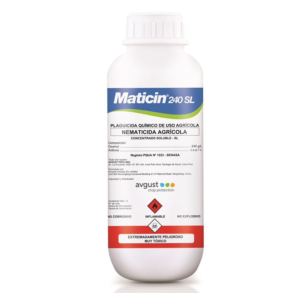 MATICIN 240 SL es un nematicida que actúa por acción sistémica y también por contacto puede ser aplicado directamente al follaje o a la superficie del suelo.