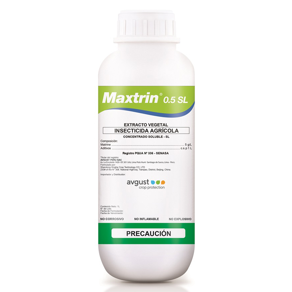 MAXTRIN 0.5 SL es un insecticida/acaricida biológico de origen vegetal que tiene como ingrediente activo al Matrine. Actúa principalmente por contacto y vía estomacal.