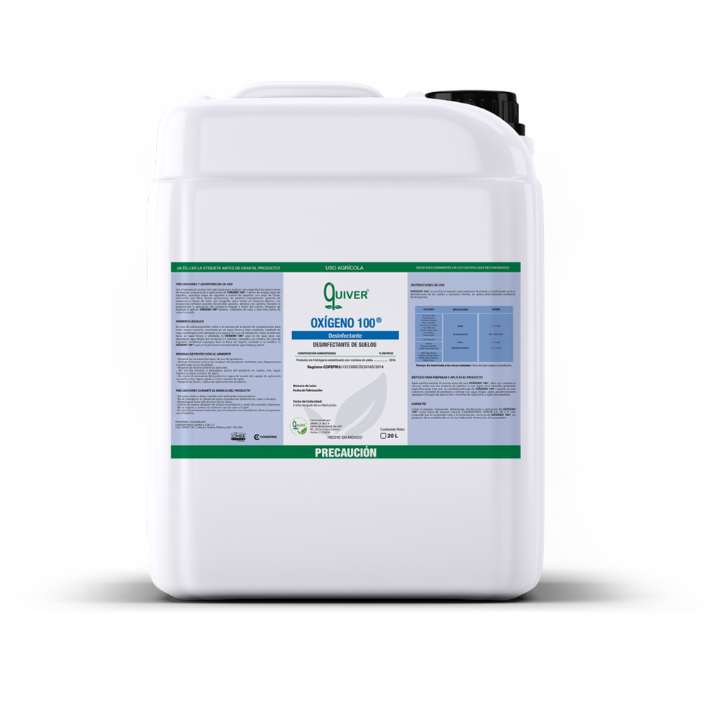 OXÍGENO 100® es eficaz en el control de insectos como el ácaro blanco y hongos exofitos, así como en la oxigenación de raíces y destaponamiento de goteros por materia orgánica.