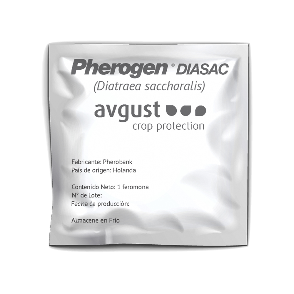 PHEROGEN DIASAC es una feromona sintética de la polilla Diatraea saccharalis que atrae los machos de la plaga. Esta puede ser usada con la finalidad de monitorear las poblaciones de la plaga o también para una captura masiva mediante trampas colocadas en los campos de cultivo para reducir las poblaciones de la plaga.